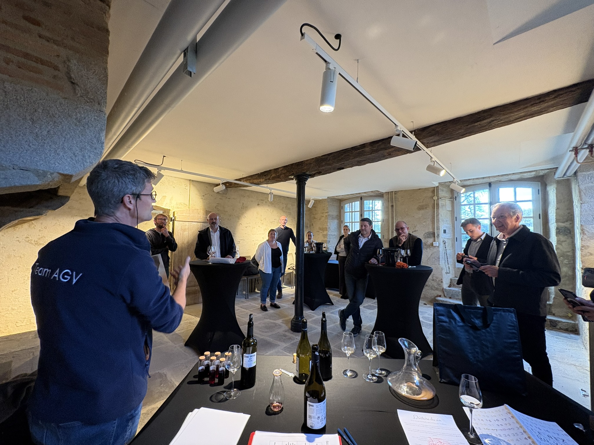 Cette expérience immersive se déroule en quatre grandes étapes ludiques et interactives. Les participants commencent par un voyage dans le temps à la découverte de l’histoire du vin et de ses grandes évolutions. Ils explorent ensuite les terroirs et les cépages afin de comprendre l’influence du sol, du climat et des régions viticoles sur les arômes et le caractère des vins. Place ensuite à la créativité avec une phase d’assemblage et de création, permettant de composer une cuvée unique ou de tenter la reproduction d’un vin, une expérience originale et exclusive. Enfin, l’activité se conclut par une approche sensorielle autour des 5 sens, invitant les participants à déguster le vin de manière ludique, surprenante et pleinement immersive.
